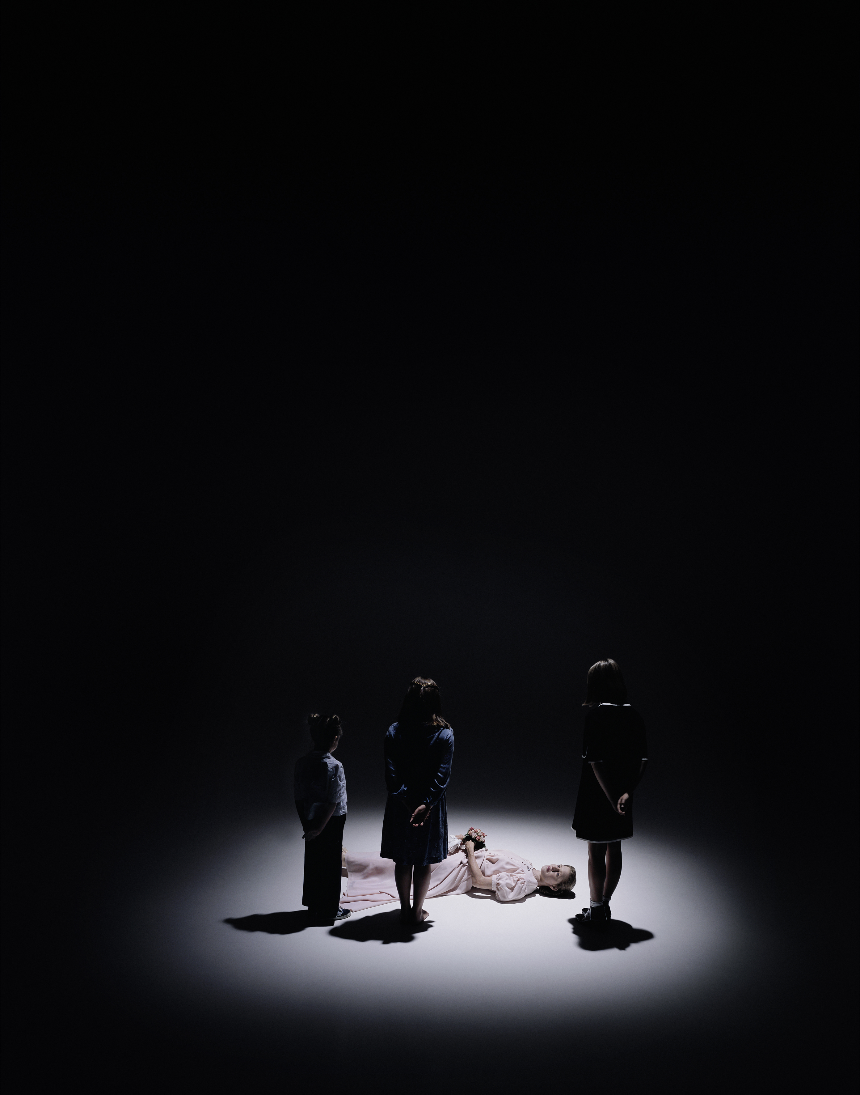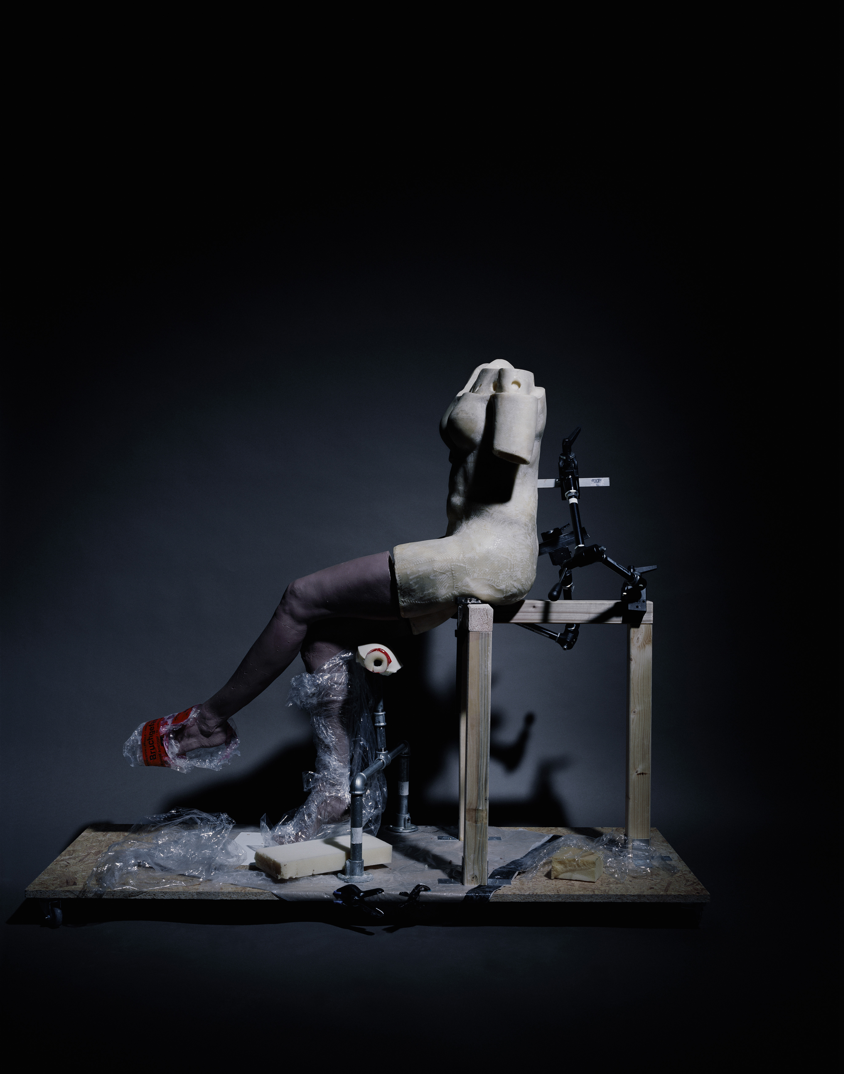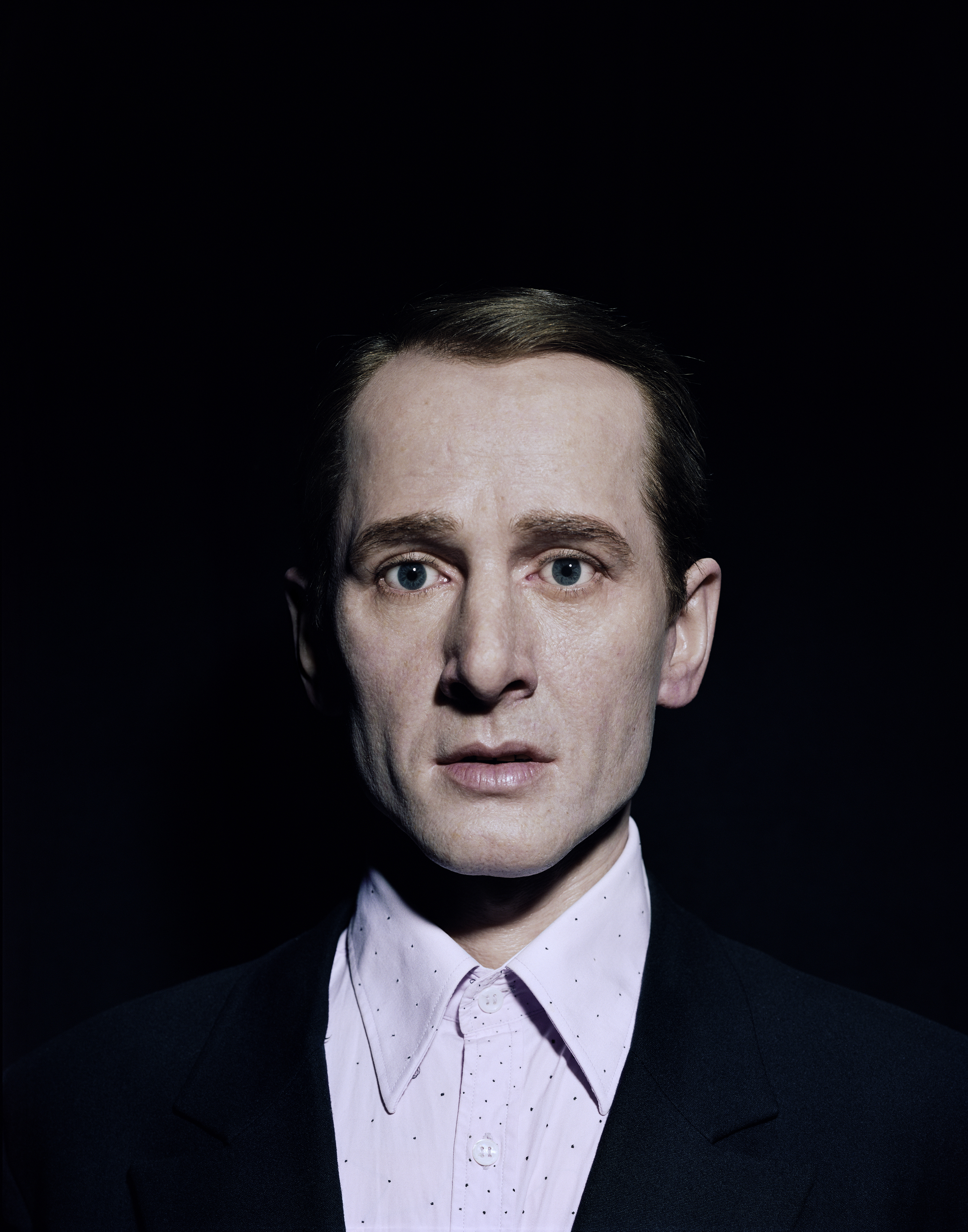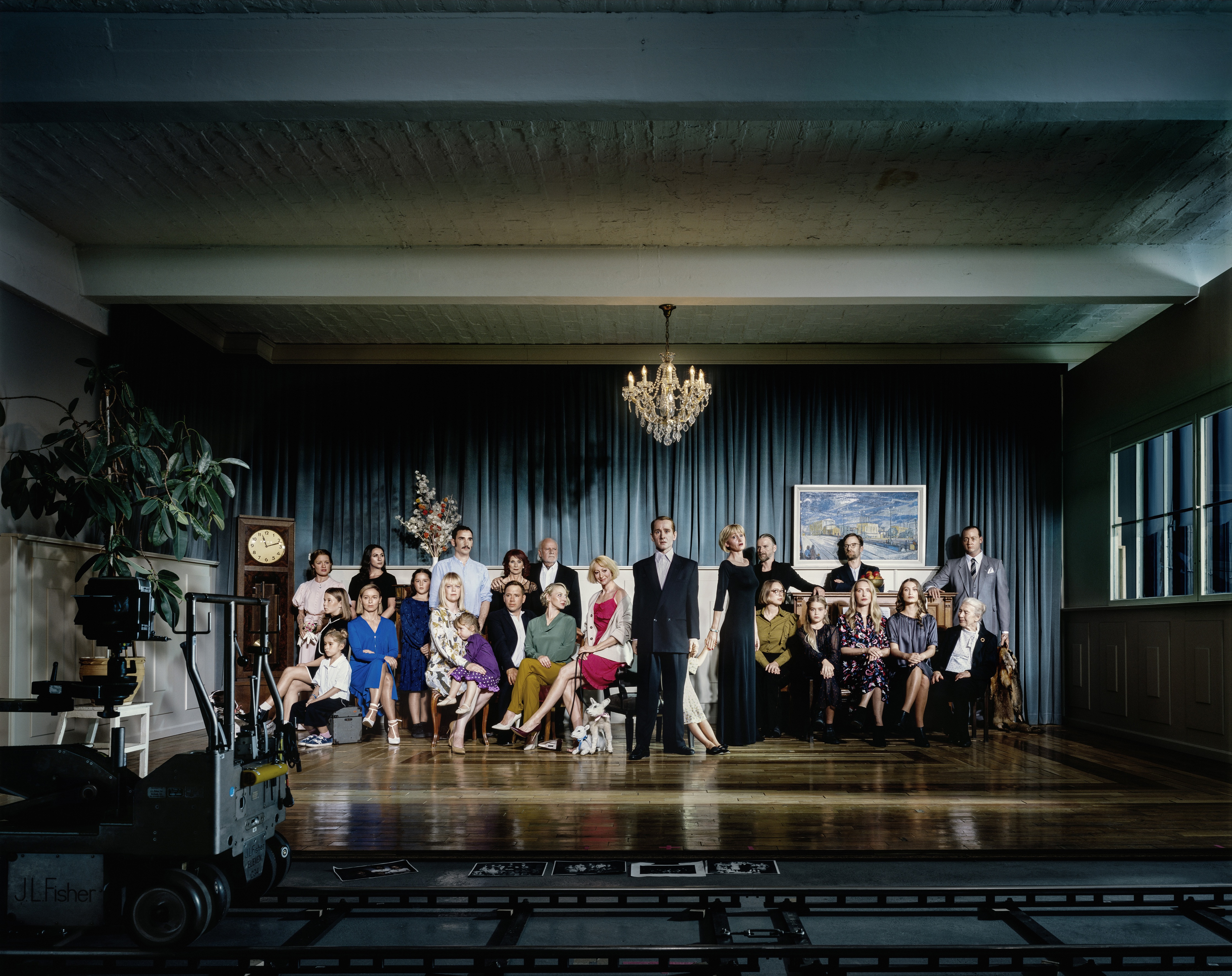 The carefully composed images suggest a certain kinship to theatre and staging. The proximity to acting, theatre and film can be inferred in part from his personal biography: His father was the well-known actor Ulrich Mühe; his mother is the renowned theatre director Annegret Hahn. These two personalities, along with other relatives, represent the protagonists in his new series of works conceived for an exhibition at Hamburger Bahnhof – Museum für Gegenwart – Berlin. In two large-scale photographic family portraits Mühe brings together living and no longer living members of his family. Working from photographs, he used a complex and laborious production process to have deceased family members replicated as strikingly lifelike sculptures.