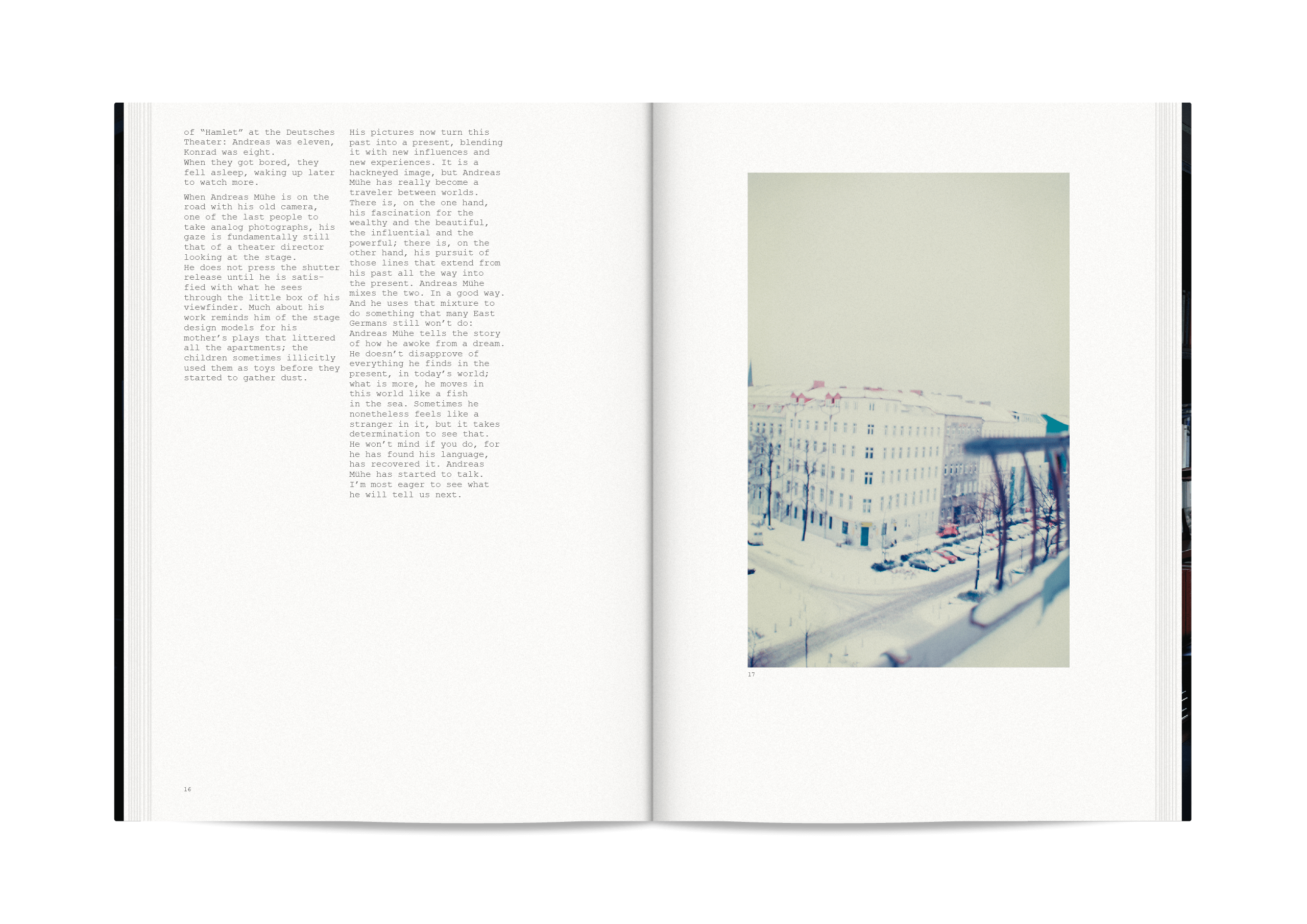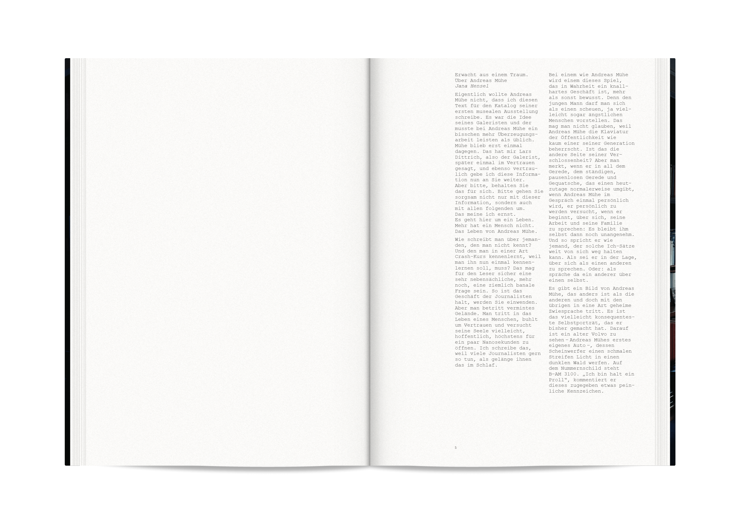 Das vorliegende Buch ist die erste umfangreiche Monografie zum Werk von Andreas Mühe, mit einer hinreißenden Beschreibung der Person Andreas Mühe von der ebenfalls aus Ostdeutschland stammenden Autorin Jana Hensel und Texten des Kritikers Kito Nedo und des Kurators Ingo Taubhorn.